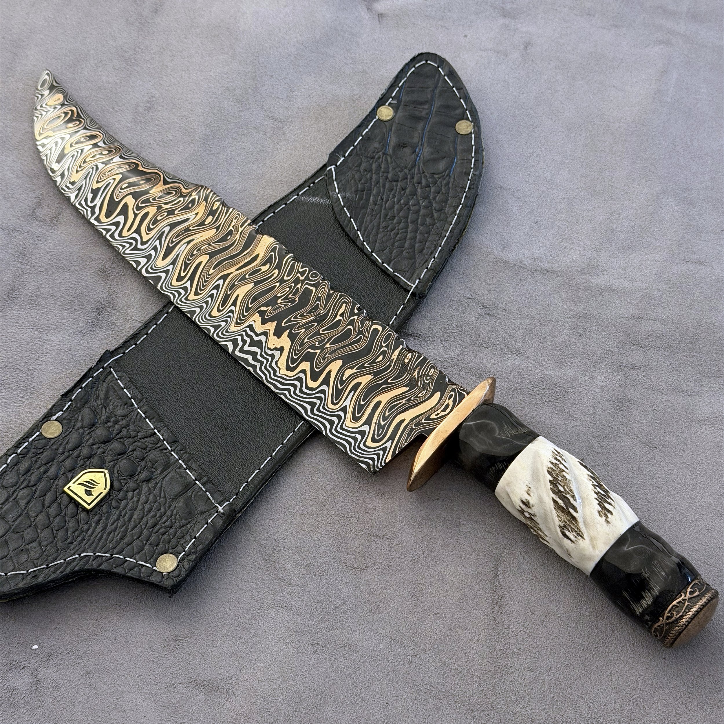 Sobre o Aço Damasco: Inventado há mais de 1500 anos, são conhecidas por sua resistência, rigidez, durabilidade e originalidade. É um aço onde há um grande número de camadas de aço cromo 15N20 e aço carbono 1095, caldeadas umas às outras assim formando um desenho único em cada peça.